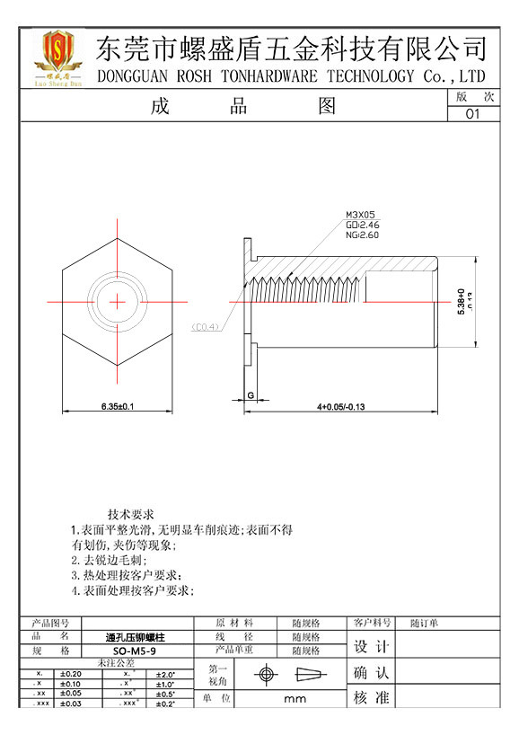 SO-M5-9 壓鉚螺母柱