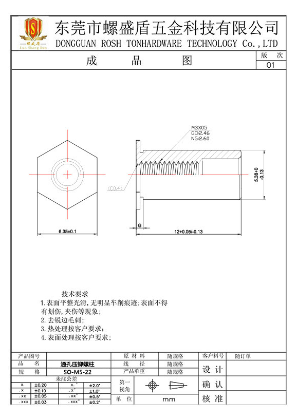 SO-M5-22 壓鉚螺母柱