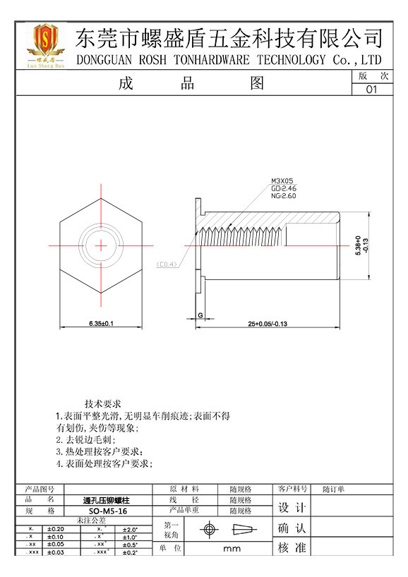 SO-M5-16 壓鉚螺母柱