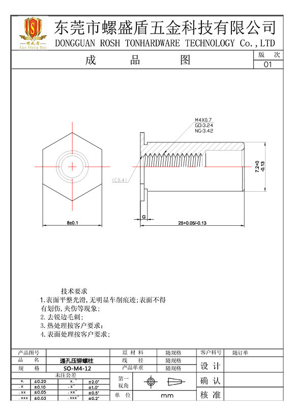 SO-3.5M4-12 壓鉚螺母柱