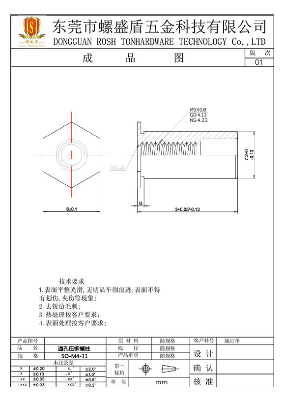 SO-3.5M4-11 壓鉚螺母柱