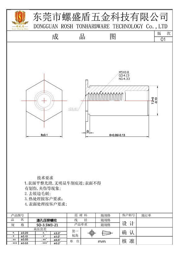 SO-3.5M3-21 壓鉚螺母柱