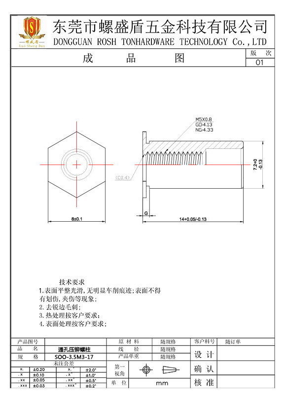 SO-3.5M3-17 壓鉚螺母柱