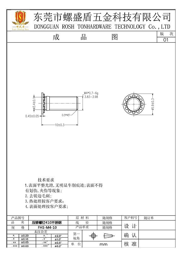 壓鉚螺絲410不銹鋼公制