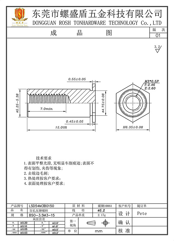 BSO-3.5M3-15 壓鉚螺母柱