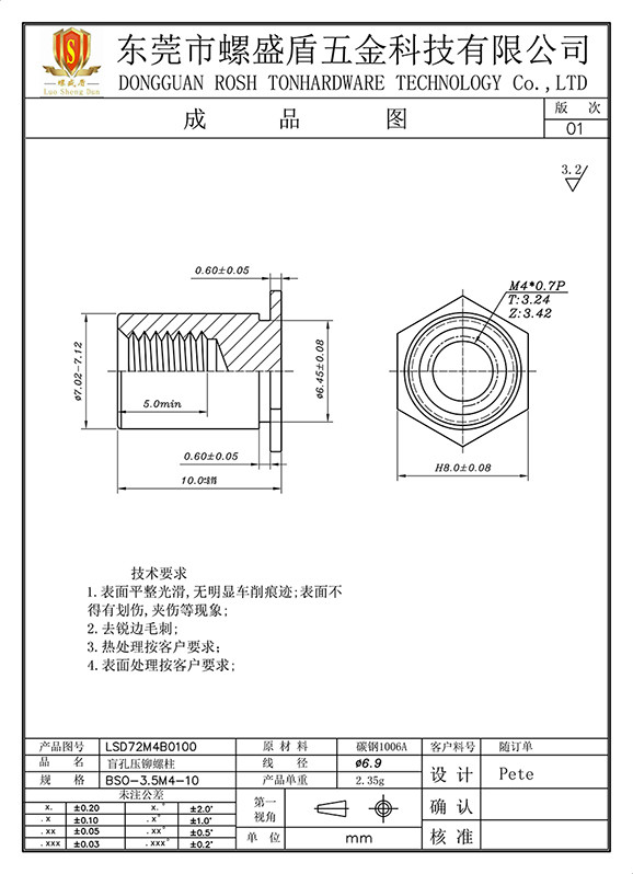 BSO-M4-10 壓鉚螺母柱