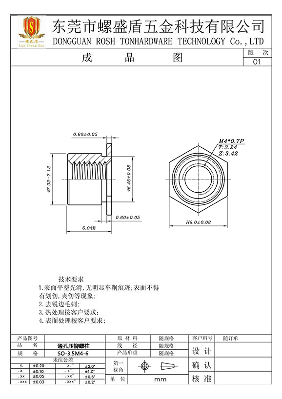 SO-3.5M4-6 壓鉚螺母柱