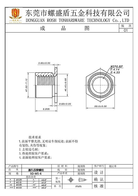 SO-M5-6 壓鉚螺母柱