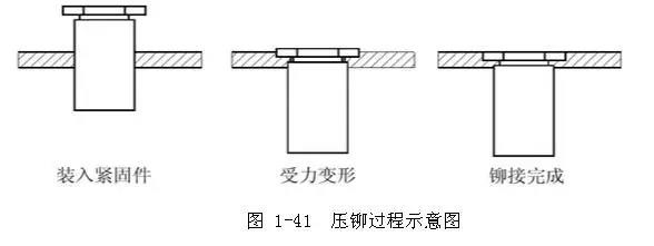 壓鉚螺母柱的壓接過程如圖1-41所示: