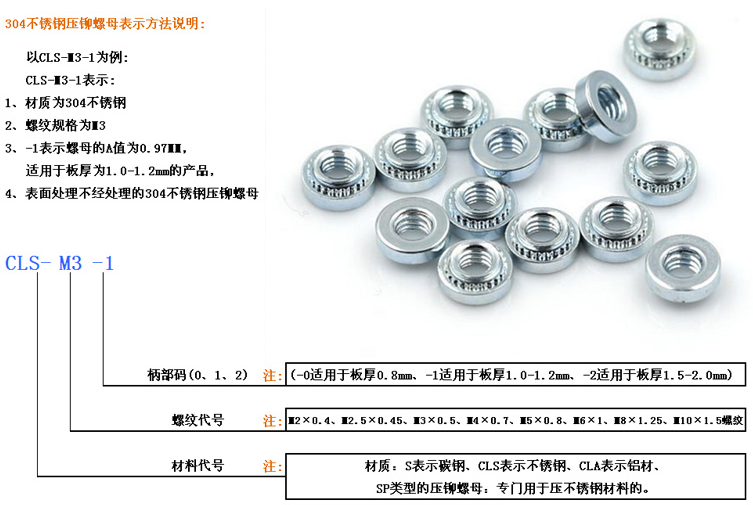 304不銹鋼就是一種在空氣中或者化學(xué)腐蝕介質(zhì)中能夠抵抗腐蝕的一種通用高合金鋼,廣泛應(yīng)用于要求良好綜合性能耐腐蝕合成型性的設(shè)備和機(jī)件上。東莞螺盛盾廠家生產(chǎn)的壓鉚螺母、壓鉚螺柱、壓鉚螺釘都采用304不銹鋼優(yōu)質(zhì)材料。所謂的201不銹鋼,其實(shí)就是將回收的廢鐵、鉛、銅經(jīng)過(guò)二次回爐加工,在通過(guò)脫磁處理而成的“不銹鐵”,吸鐵這種方法完全辨別不了,其抗拉強(qiáng)度還不及304不銹鋼的1/3,使用極易導(dǎo)致發(fā)生事故。所以我們特別提醒大家,因?yàn)?01材質(zhì)成本低廉,所以價(jià)格普遍較低——大家一定不要貪圖便宜,而不上受騙。