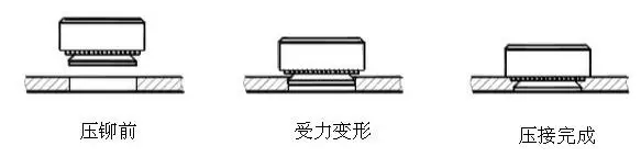 那么我們需要弄清楚壓鉚螺母的的鉚接原理。壓鉚就是在進行鉚接過程種在外界壓力下,壓鉚件使材料發生塑性變形、擠入鉚裝螺釘、螺母結構中設定的槽內,實現了兩個零件的可靠連接方式。
