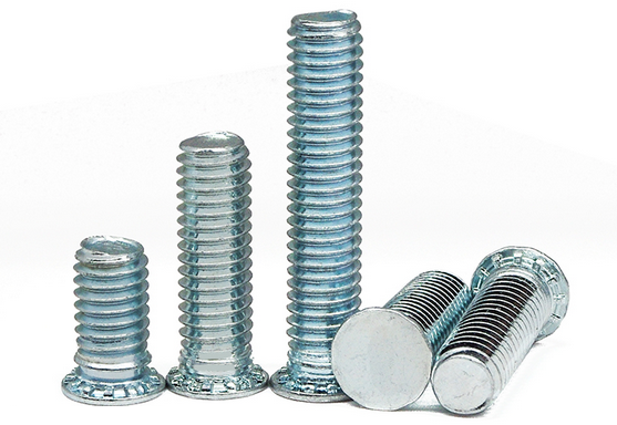 壓鉚螺絲也叫壓鉚螺釘,同時也叫壓鉚螺栓。他的生產工藝大致有螺絲的生產工藝差不多,也是先購買回螺絲線材,后訂好規格、尺寸的模具。然后把模具調好機裝好在打頭機上。后打頭技術人員按一定的打頭程序去操作打頭機。從打頭機出來的壓鉚螺釘基本上成了形,倒角、頭部大小、尺寸長度等等形狀尺寸都差不多確定好了。那現在就直接拿去搓牙了。先定好壓鉚螺釘牙板,調好機,馬上就可以搓絲了。絲搓好,看看牙螺紋能不能過通止規。