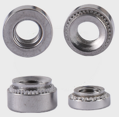 另外如金屬板材、控制箱及電源柜等產(chǎn)品較薄的板材就則以“壓鉚”作業(yè)實現(xiàn),我們通常稱為壓鉚螺母 壓鉚螺絲 壓鉚螺母柱 。如下圖所示。