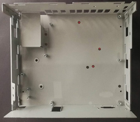 下道工序。在落料完成后,進(jìn)入下道工序,不同的工件根據(jù)加工的要求進(jìn)入相應(yīng)的工序。有折彎,壓鉚,翻邊攻絲,點(diǎn)焊,打凸包,段差,有時(shí)在折彎一兩道后要將壓鉚螺母或壓鉚螺柱壓好,其中有模具打凸包和段差的地方要考慮先加工,以免其它工序先加工后會(huì)發(fā)生干涉,不能完成需要的加工。在上蓋或下殼上有卡勾時(shí),如折彎后不能碰焊要在折彎之前加工好。