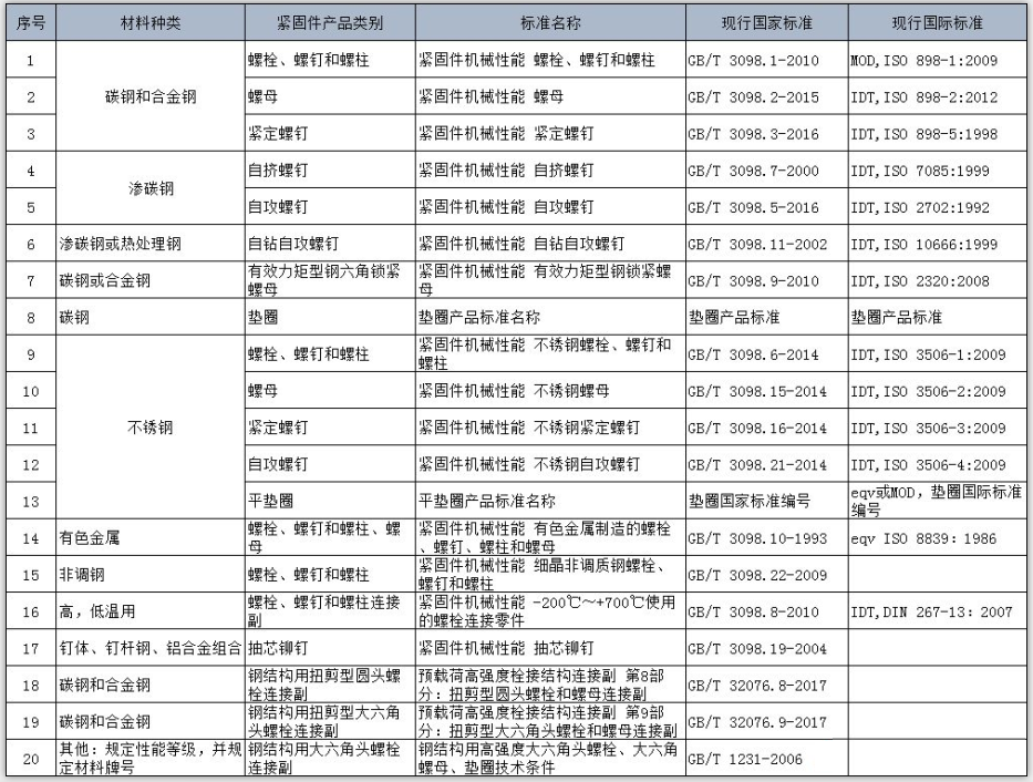 螺盛盾,我國緊固件機械性能標準與國際標準對照表