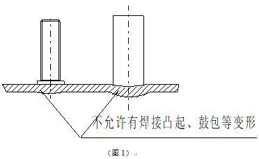 2、施焊前準備:為了保證產品的外觀質量,避免焊后零件背面起包,現要求壁厚≤1.5 mm的零件必須放于平板之上進行儲能焊;對于壁厚≥2 mm的零件可以不放于平板之上,但要保證焊后零件表面平整,沒有焊接凸起變形及人為凸包(如圖1所示)。