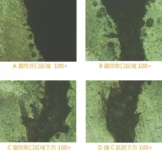 1. 裂紋是由材料不良引起的,主要是材料中夾雜物分布面廣、顆粒大、分布密集,均超過了技術要求的標準。