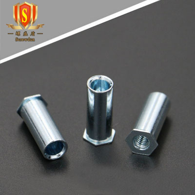 上面這種叫SO(通孔)壓鉚螺柱,當然,還有盲孔的,就是六角這一頭是不通的,叫BSO,它長的是這樣的: