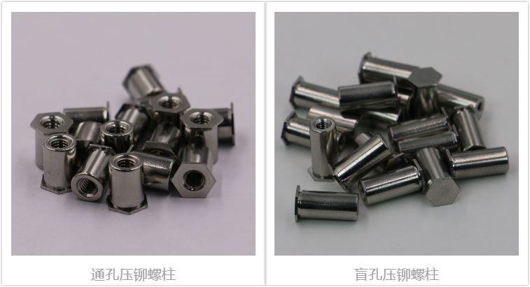 壓鉚螺柱的形狀標準:這個一般有兩種,一種是通孔壓鉚螺柱,另一種是盲孔壓鉚螺柱,他們之間的主要區別在于螺柱里的孔是不是通的。